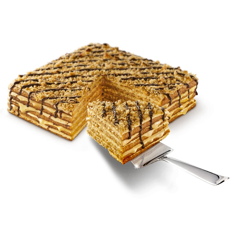 This Honey cake is made with walnuts and made of several layers. You can never go wrong with these classic favorites! A delicious cake drizzled with chocolate. Especially when we combined them together for the pleasure seekers’ delight. MARLENKA® is a traditional honey cake with nuts, made according to an old Armenian family recipe. The secret manufacturing procedure enables us to combine the honey and milk mixture to create this multi-layered honey delicacy. The top is drizzled with chocolate icing and sprinkled with chopped walnuts.