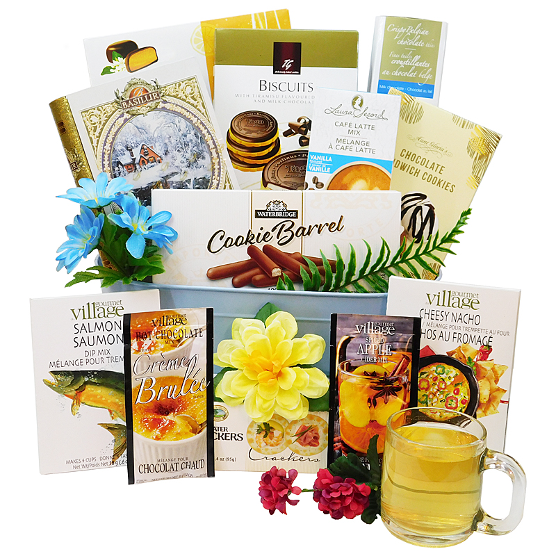 Select your preferred mug design and have it delivered to her doorstep, accompanied by an array of savory and sweet delicacies. Indulge her taste buds with delectable orange jelly chocolates, Tiramisu cream-filled chocolate cookies, and other delights. Moreover, the elegantly crafted mug will serve as a daily reminder of your affectionate thoughts towards her. This opulent gift basket is bound to be the highlight of the day for its recipients.