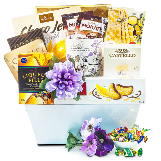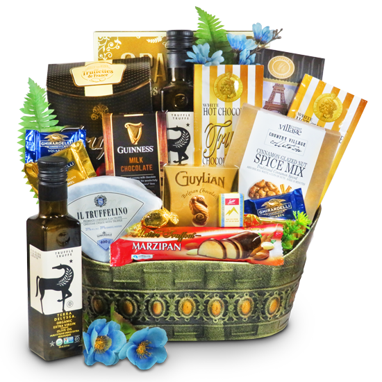 Our gourmet gift baskets are most rated in the food lovers community. Gourmet ingredients include: Milka, Cherry Queen, Lindt Lindor, Truffles, specialty cookies, savory gourmet cheese, baked or cold dip mix, crab meat, Basilur tea, coffee, fresh fruit, and more gourmet foods in gift baskets. Find gift baskets with special porcelain figurine of angels, plush toys, collectible mugs and more! These gift baskets can make the best gifts for corporate and offices all to enjoy around the seasons. They also are the best gifts to give for Valentine’s Day, Christmas, Birthday, Corporate, Thank you, New Baby, Wedding Anniversary and More!