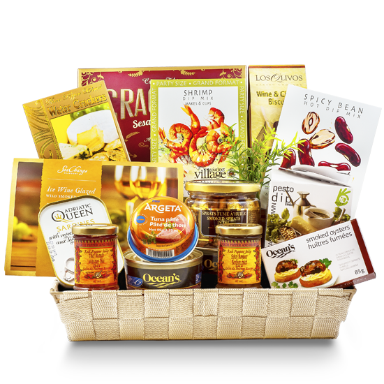 - Gourmet Seafood Basket: Featuring a fine selection of crab pate, ice wine salmon, and shrimp dip mix to elevate a special dinner with friends.