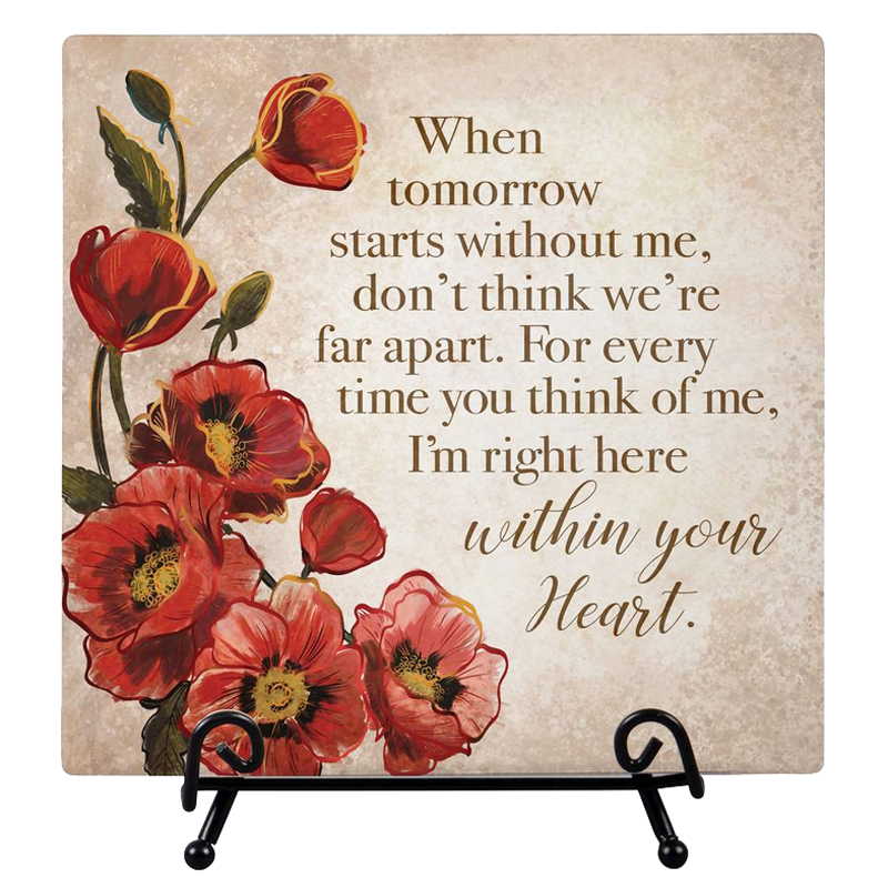 - Ceramic Plaque with a black wire stand 6 in x 6.5 in H